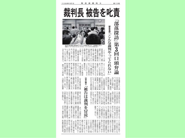 被告は、オンラインによる裁判を要望したが、埼玉では公開の法廷で開かれます。〈解放新聞埼玉より〉